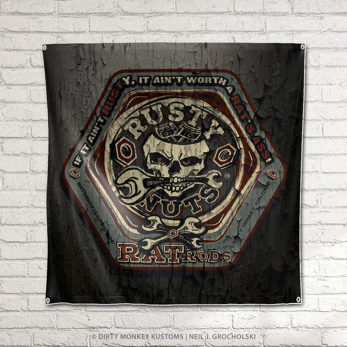 "Rusty Nuts" Rat Rod garage banner/sign
