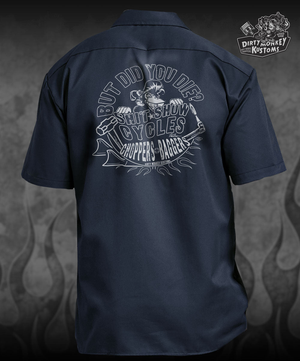 Custom Mechanic Work Shirts for Car Guys, Hotrodders & Bikers | Dirty Monkey Kustoms