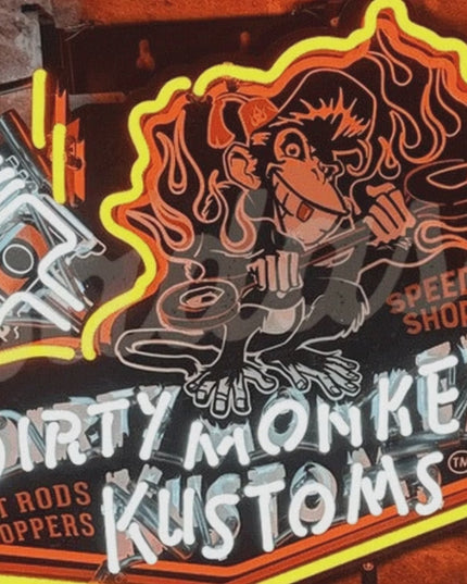 Dirty Monkey Kustoms 18" Handcrafted Neon Sign - Vibrant Glass Tube Hot Rod Art for Bar & Man Cave