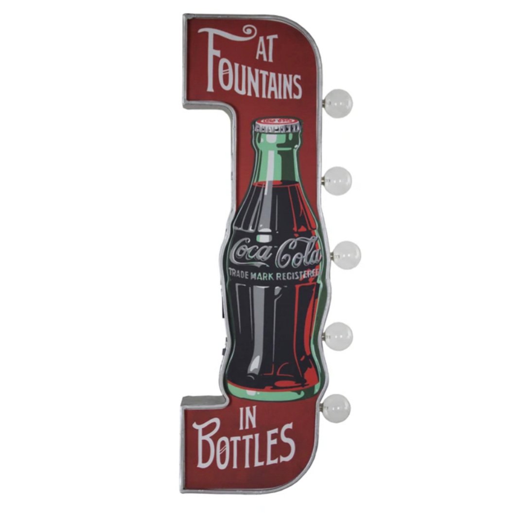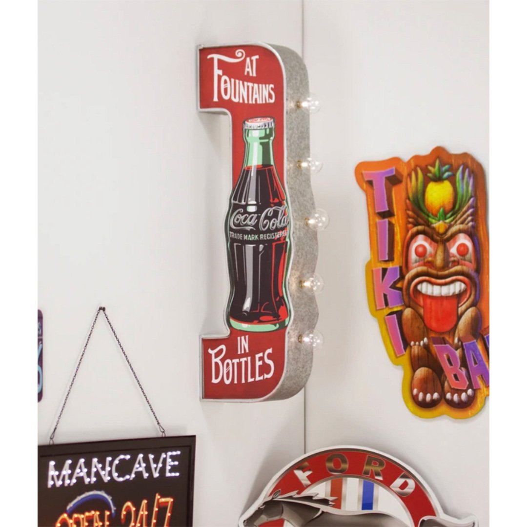 Finish off the look in your man cave, garage, home bar or game room with this vintage-inspired, double-sided Coca-Cola LED marquee sign.